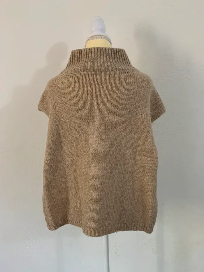 Pull sans manches col zippé beige chiné – Taille unique - photo numéro 1
