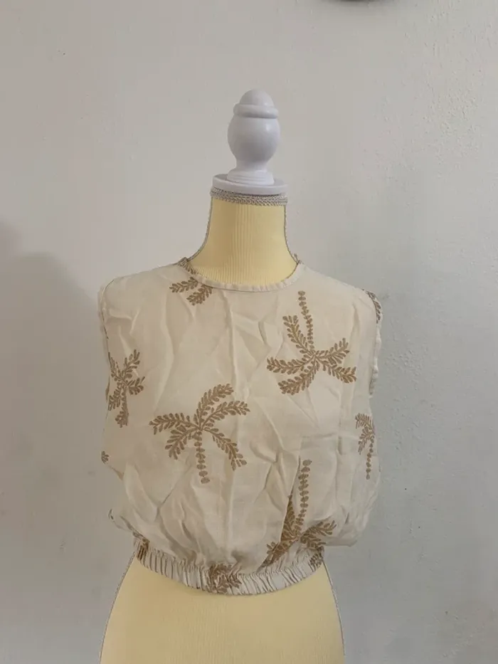 📏 Taille : Unique 🏷️ Marque : Made in Italy 🎨 Couleur : Crème avec motifs brodés marron ✨ État : Très bon état 💬 Description : • Haut léger et fluide parfait pour l’été 🌞 • Motifs palmiers brodés pour une touche exotique 🌴 • Coupe sans manches avec élastique à la taille pour un effet blousant 👌 • Fermeture goutte d’eau au dos avec bouton discret 🔘 • Facile à associer avec un short, un jean ou une jupe pour un style casual chic ✨ #oussama1418_TailleUnique