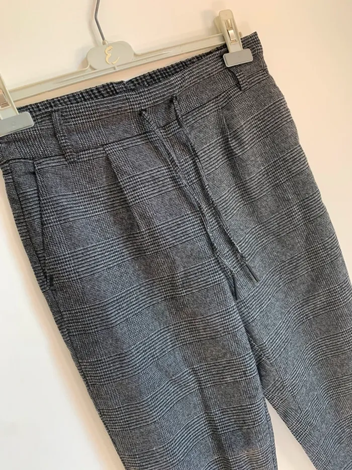 📏 Taille : XS / 34 🏷️ Marque : ONLY 🎨 Couleur : Gris à carreaux (motif prince de Galles) ✨ État : Neuf sans étiquette 💬 Description : • Pantalon élégant à motif carreaux, style prince de Galles 👌 • Taille élastiquée à cordon ajustable pour un confort optimal 🔒 • Deux poches latérales pratiques à l’avant + fausses poches passepoilées à l’arrière ✨ • Coupe fuselée moderne, facile à porter avec baskets ou talons 👟👠 • Parfait pour un look chic au bureau ou décontracté au quotidien 🌸 #oussama1418_TailleXS #oussama1418_Taille34