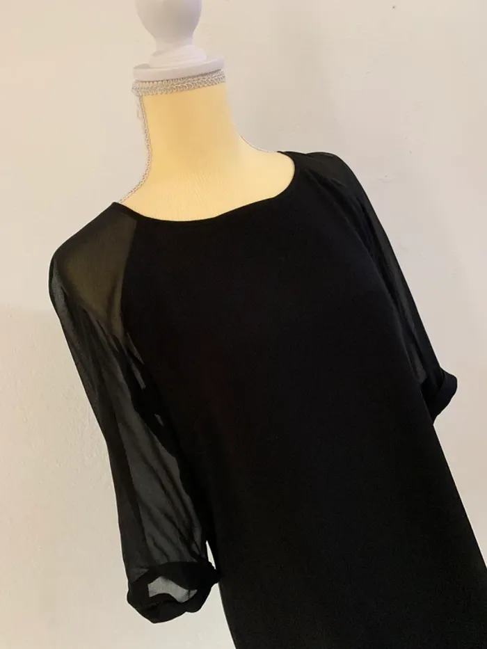 📏 Taille : M 🏷️ Marque : Promod 🎨 Couleur : Noir ✨ État : Très bon état 💬 Description : • Robe fluide noire avec manches en voile transparent 🌹 • Dos semi-transparent avec patte de boutonnage discrète ✨ • Coupe droite et chic, facile à porter au quotidien ou en soirée 🌙 • Tissu léger et agréable pour un look sobre et raffiné 👗 #oussama1418_TailleM
