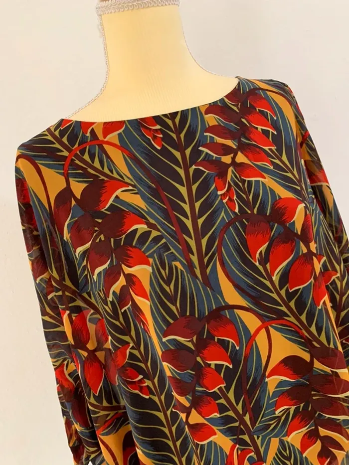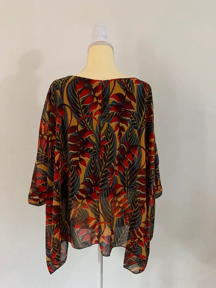 📏 Taille : S/M 🏷️ Marque : Molly Bracken 🎨 Couleurs : Multicolore (dominante rouge, jaune moutarde & vert) ✨ État : Très bon état 💬 Description : • Blouse fluide et légère à manches amples 🌸 • Motif feuillage tropical aux tons chauds 🌴 • Coupe oversize pour un style décontracté chic ✨ • Tissu transparent qui se porte idéalement avec un top en dessous 👕 • Parfait pour un look estival ou une soirée colorée 🌞 #oussama1418_TailleS #oussama1418_TailleM