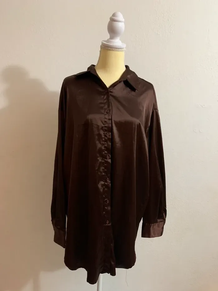 Chemise satinée marron - Taille M - photo numéro 1