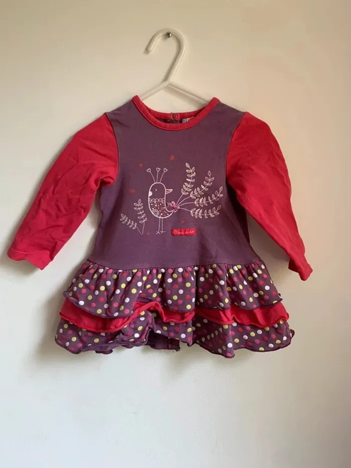 📏 Taille : 12 mois 🏷️ Marque : Orchestra 🎨 Couleurs : Violet, fuschia, pois multicolores ✨ État : Très bon état 💬 Description : • Robe à manches longues alliant confort et fantaisie 🌟 • Haut violet décoré d’un oiseau mignon 🐦✨ • Manches fuschia et volants à pois multicolores pour un style pétillant 🎨 • Fermeture pressionnée à l’arrière pour un habillage facile 👌 • Parfaite pour la mi-saison ou les journées fraîches 🍂 #oussama1418_12mois