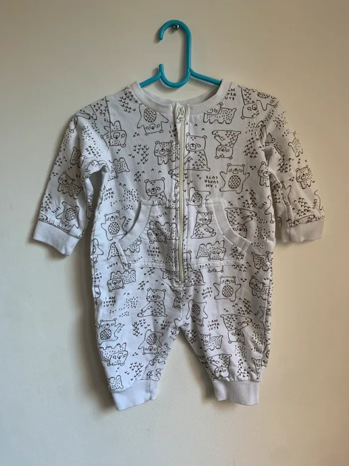 Combinaison blanche imprimée animaux – Baby – 6 mois