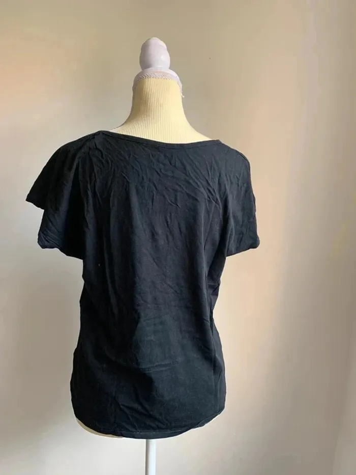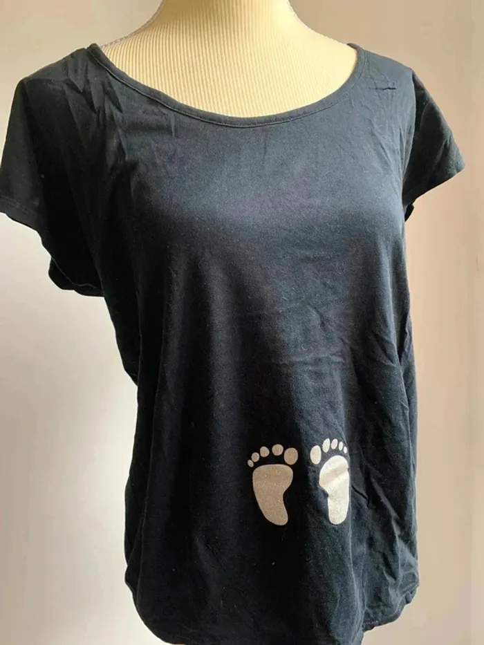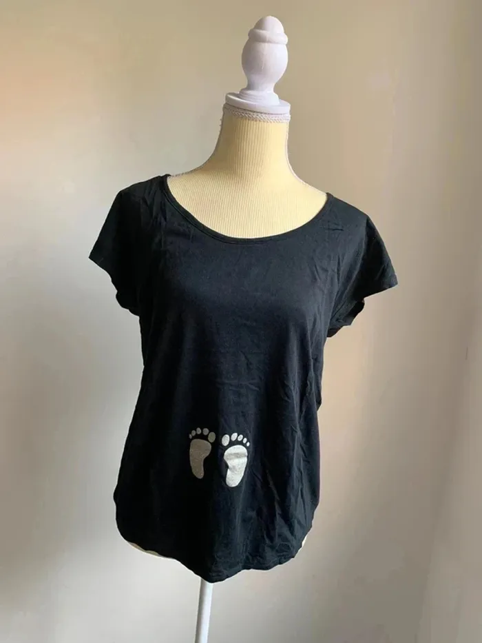 T-shirt de grossesse noir à motif pieds argentés – Kiabi – Taille 38/40