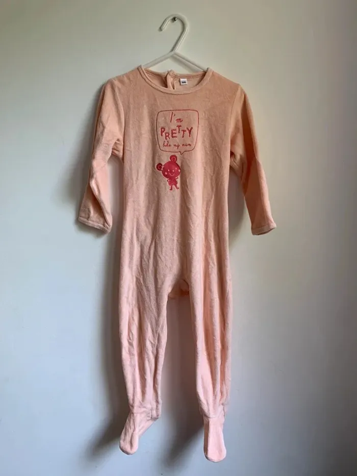 📏 Taille : 36 mois 🏷️ Marque : Inconnue 🎨 Couleur : Rose ✨ État : Très bon état 💬 Description : • Pyjama une pièce à manches longues 👕 et pieds intégrés 🧦 • Inscription “I’m pretty like my mum” 💖 • Fermeture par pressions dans le dos pour un habillage facile 👌 #oussama1418_36mois