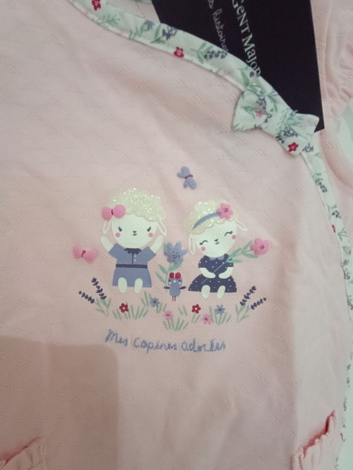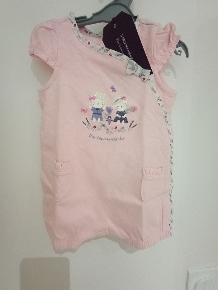 Superbe pyjacourt, peut aussi être utilisé comme barboteuse Rose à motifs "mes copines adorées" Liserai fleuri, pressions sur toute la longueur Tout neuf étiqueté #mariol69110fille3mois