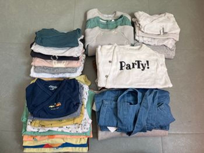 Gilets naissance, bodies manches courtes et langues, pyjamas chauds et grenouillères.