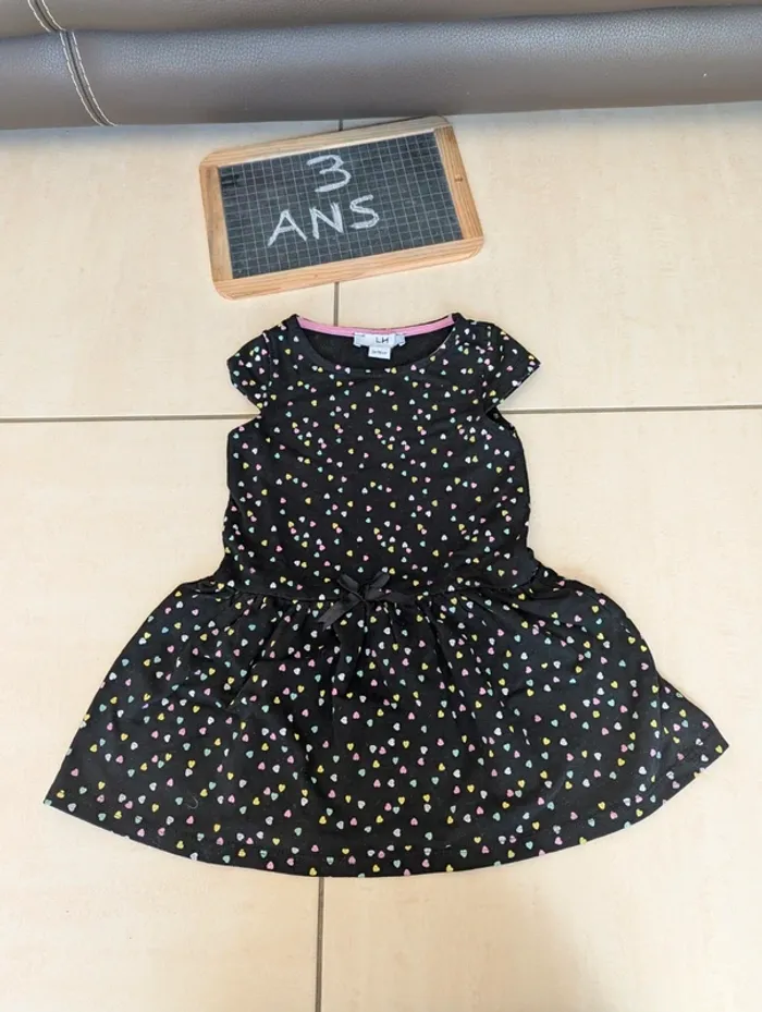 Robe noire motifs coeurs la halle 3 ans - photo numéro 1