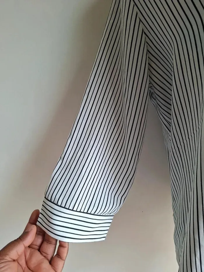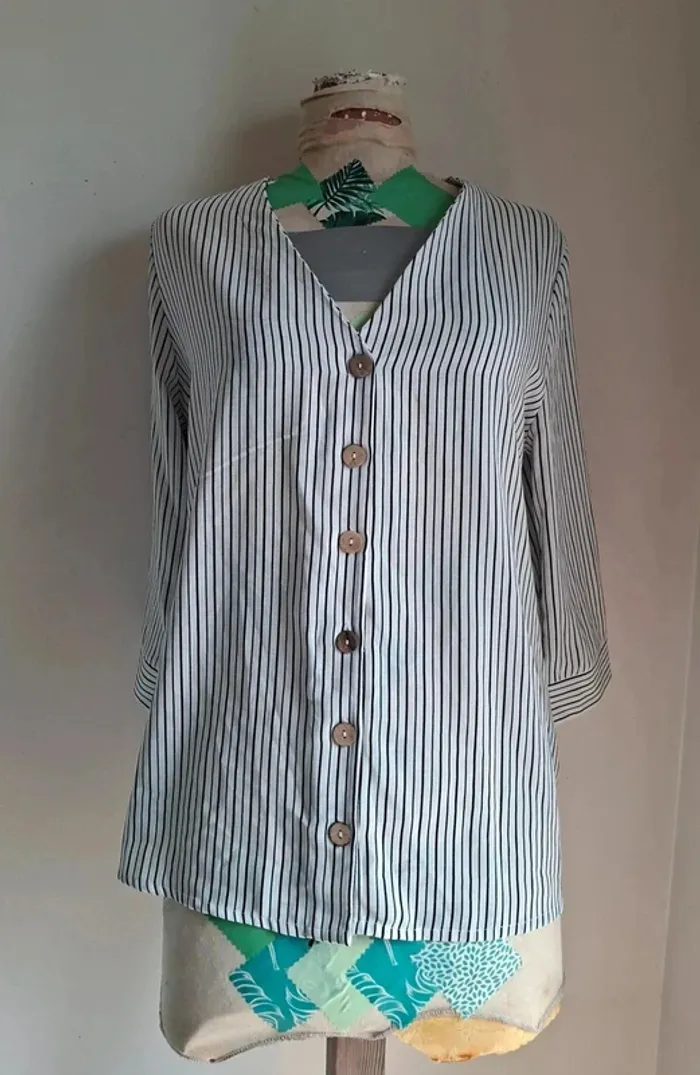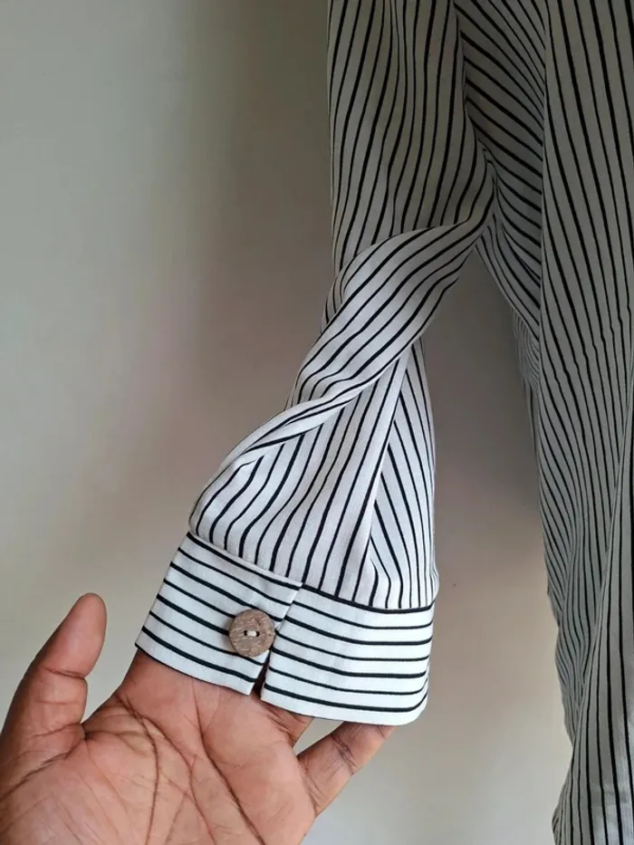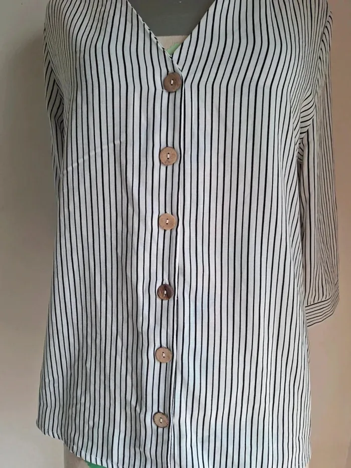 Chemise Pimkie en noir et blanc neuf, taille 42, bouton en bois, voir les dernières photos longueur 67 cm, aisselle à aisselle 56 cm, épaule à épaule 39 cm #taille42_sofaia971 #chemisefemme #vêtementfemme #pimkie #chemise #mode #élégance #tendance #casual #femme #chemise #shirt #camisa #camicia