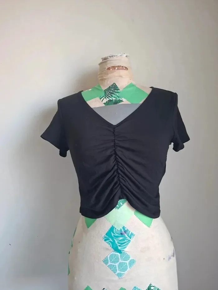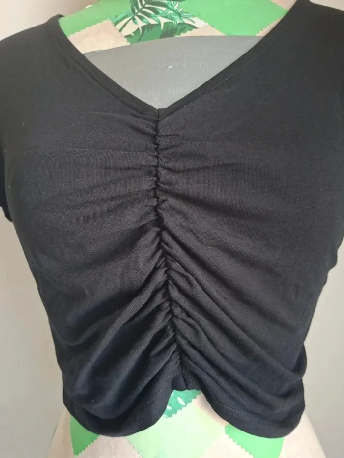 Top court noir froncé Jennifer, neuf, taille L - photo numéro 2