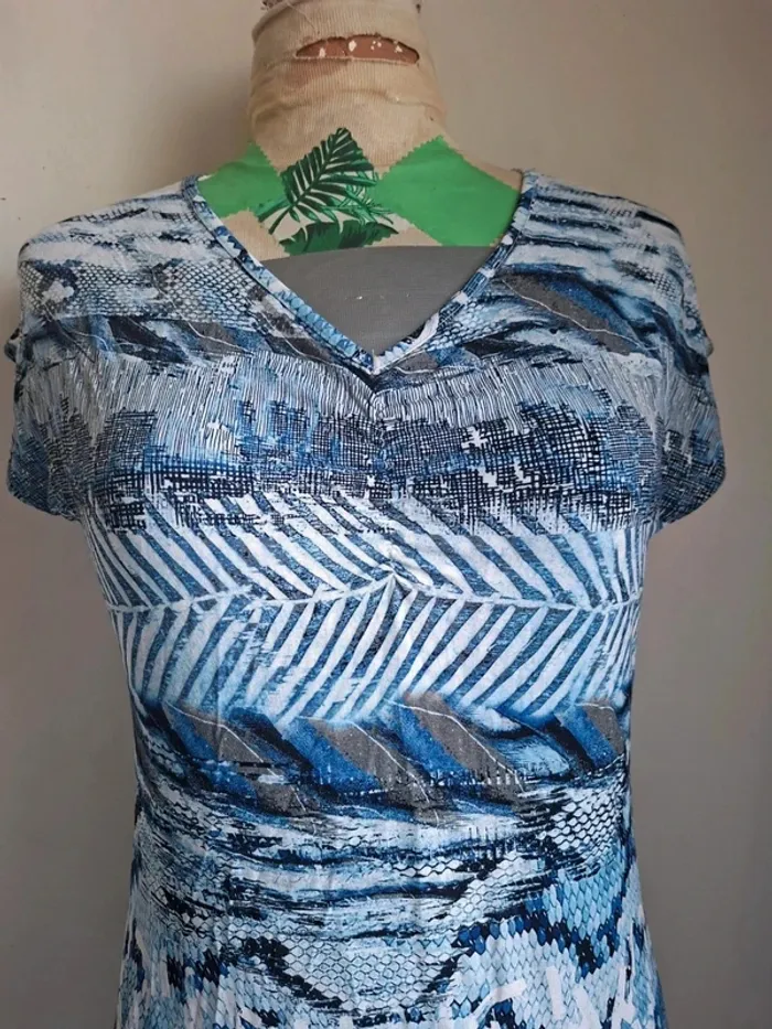 Robe Ascafa bleue, imprimé original, neuve, taille 38 - photo numéro 3