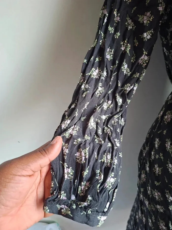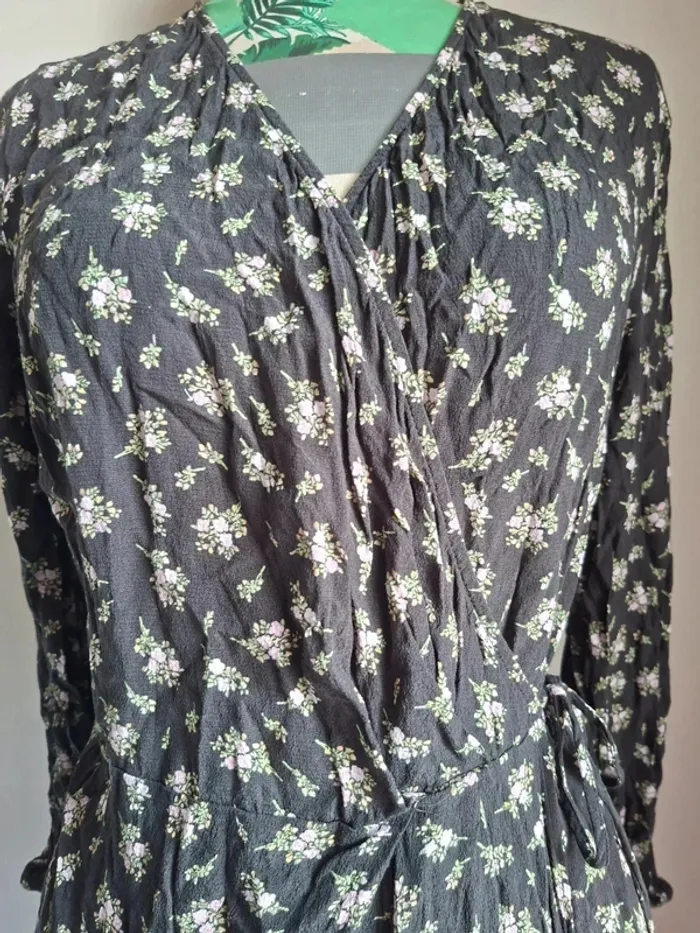 Robe longue noire à motifs, élégante, fluide, taille ajustable, porte-feuille H&M, neuve, taille M - photo numéro 5