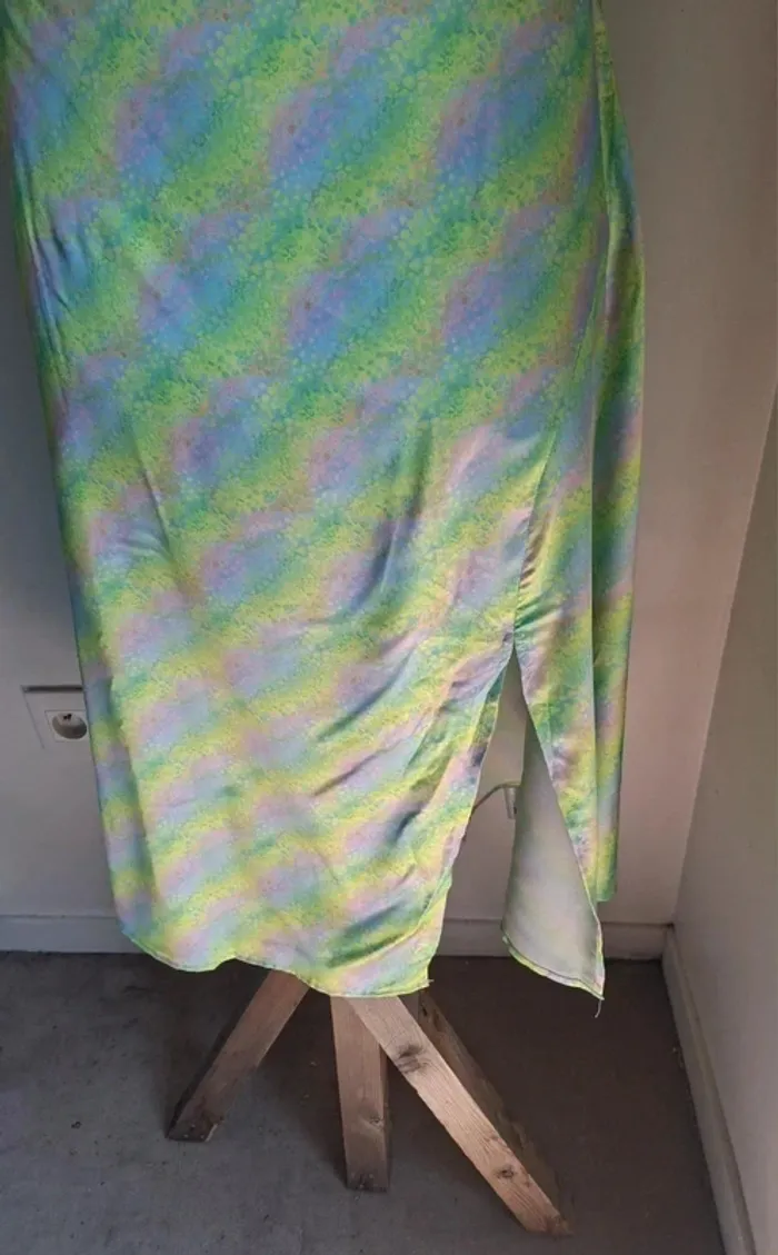 Robe midi satinée Retro&Icône, neuve, taille L, effet holograpgique et dos noué - photo numéro 2