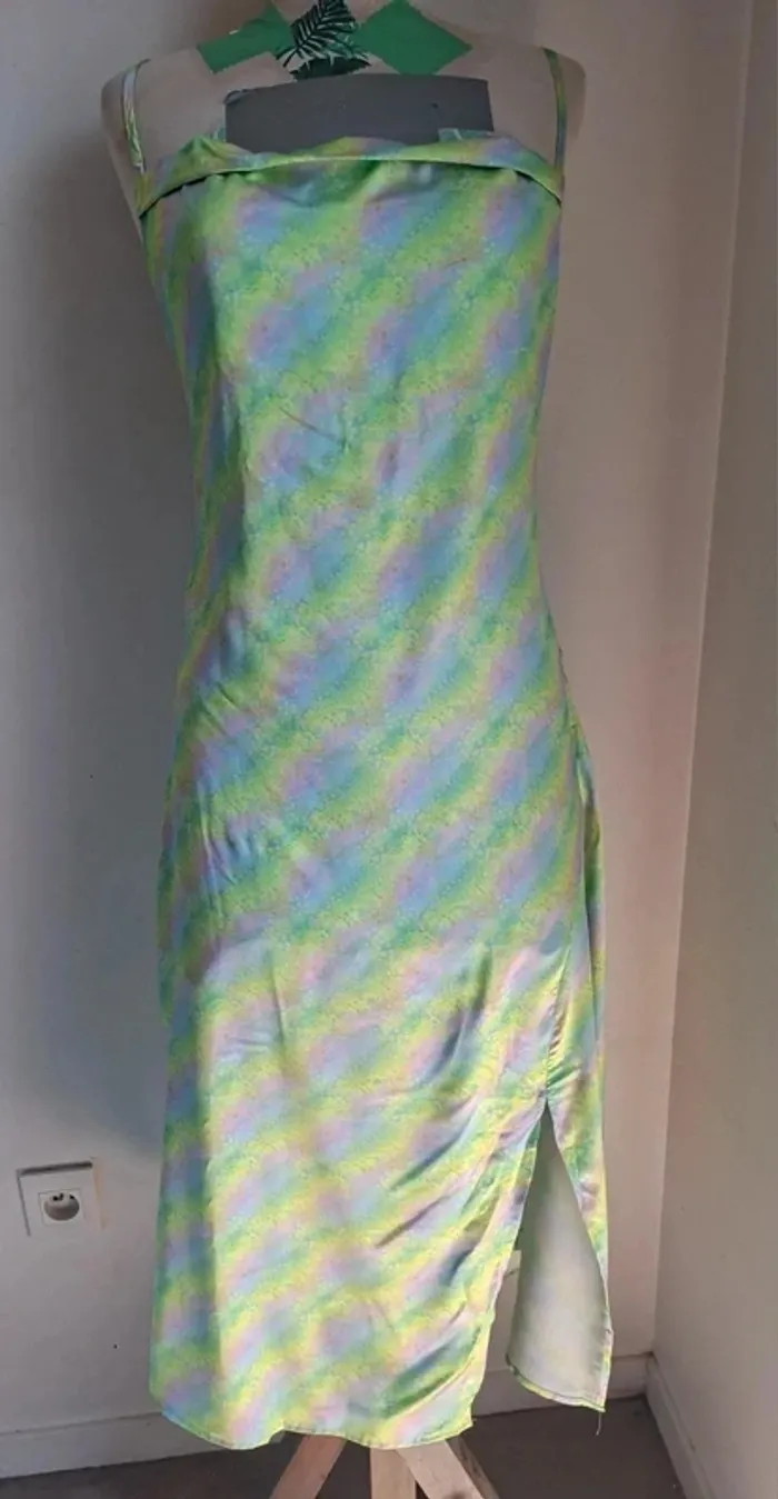 Ajoute une touche de lumière et d’originalité à ton dressing avec cette superbe robe satinée de la marque Retro&Icône ! Son effet holographique pastel est parfait pour illuminer tes looks estivaux. Taille : L (40/12) Détails : Bretelles croisées et nouées dans le dos, fente latérale pour une allure fluide et élégante. Matière : 97% polyester, 3% élasthanne – Tissu léger et confortable. Mesures : Aisselle à aisselle 44 cm, longueur 105 cm. État : Neuf avec étiquette Idéale pour une soirée d’été, un mariage ou une occasion spéciale ! 📦 Expédition rapide et soignée ❤️ Ajoute-la à tes favoris avant qu’elle ne parte ! Hashtags : #RobeÉté #EffetSatiné #ModeHolographique #LookFéminin #TenueChic #RetroIcône #RobeTendance #SummerVibes #Fashionista #VintedFinds #taillel_sofaia971 #robeété #robefemme #robe #rob #vestir #vestido #vestito #jurk