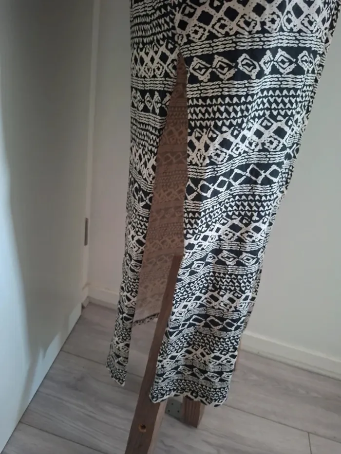 Robe longue noire et beige à motifs ethniques - taille XL - Fentes latérales - photo numéro 2