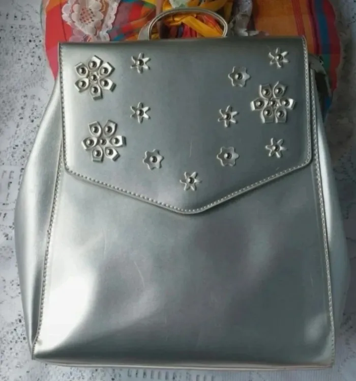 Sac à dos argenté avec fleurs en relief, neuf - photo numéro 1