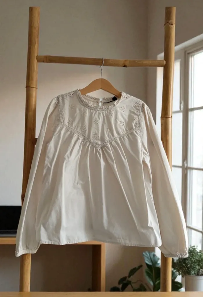 Blouse crème détail broderie anglaise 10 ans #kamilyam10ansfille