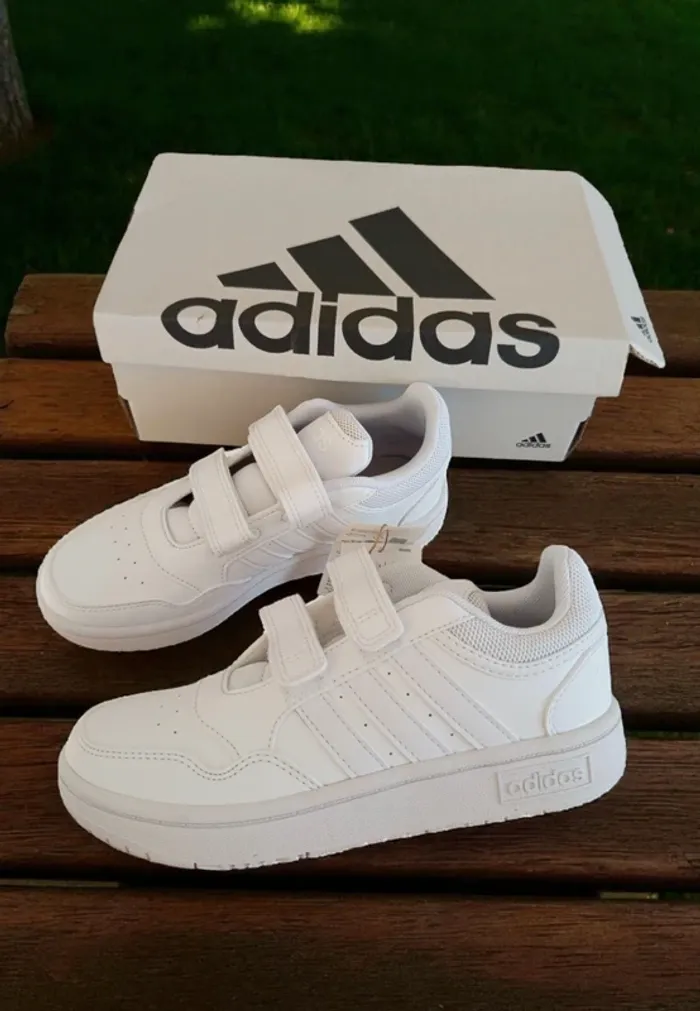 Paire de baskets Adidas blanches mixtes à scratch pointure 33 neuves dans leur boîte