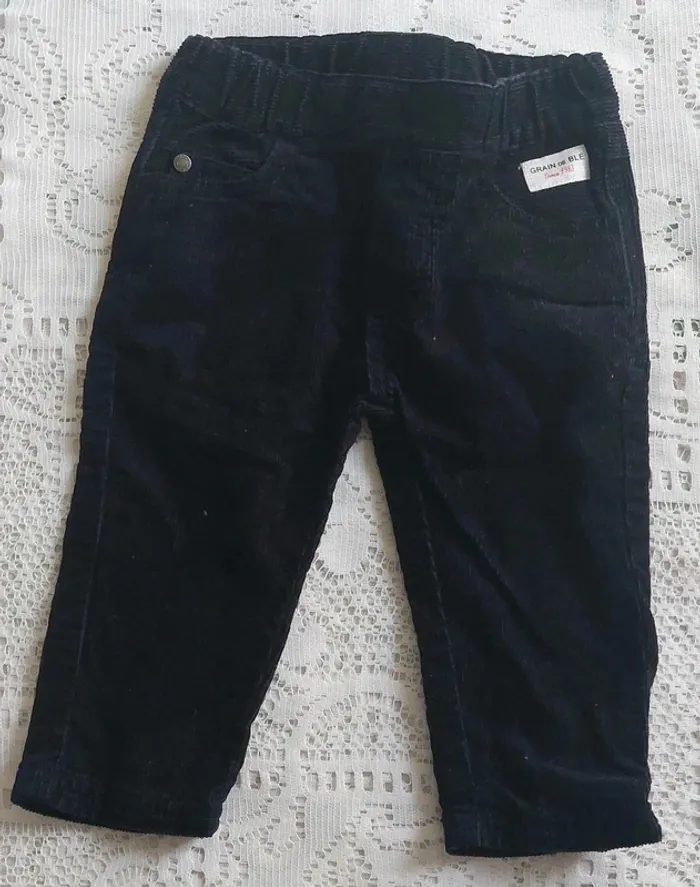 Pantalon velours noir - chaud et confortable, Grain de blé en très bon état, taille 6 mois - photo numéro 1