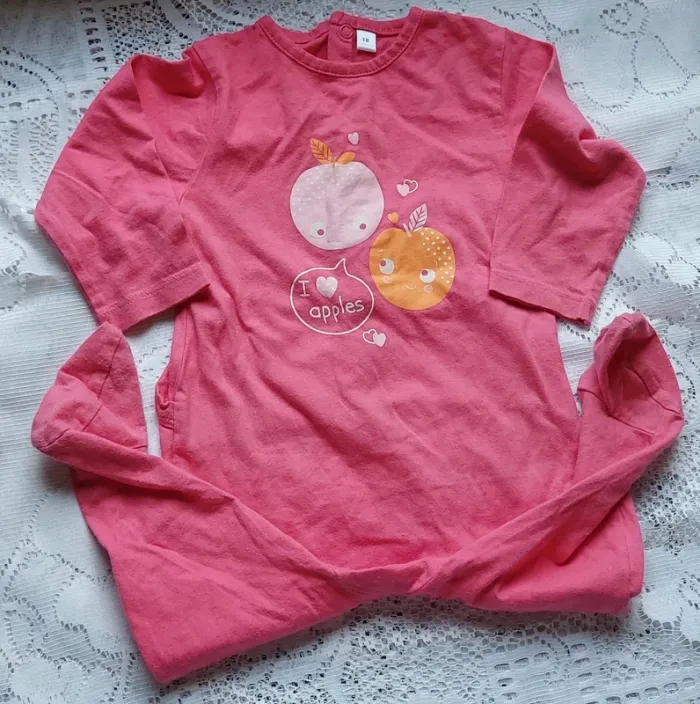 Je vends cette adorable grenouillère en coton pour bébé fille, taille 9 mois. Elle est de couleur rose avec un joli motif de pommes et le texte "I ❤️ apples". Très confortable, elle est idéale pour les nuits douces de votre bébé. Cette grenouillère est en excellent état, sans aucune tache ni déchirure. Parfaite pour offrir à votre petite princesse un sommeil paisible. #taille9mois_sofaia971 #bébéfille #grenouillère #9mois #vêtementsbébé #rose #coton #trèsbonétat