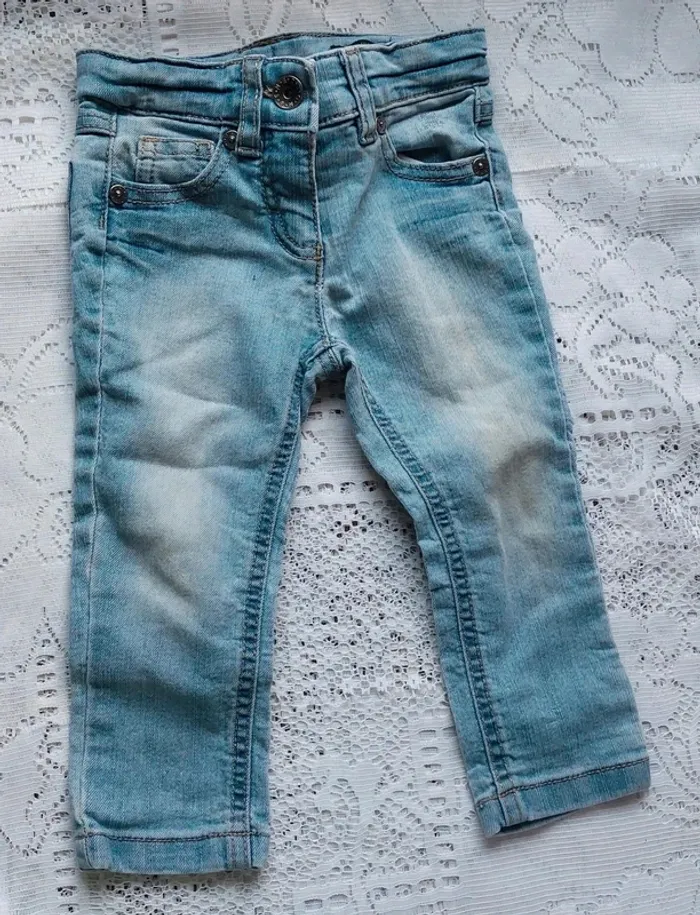 Jean skinny bleu clair - coupe droite, Benetton, en très bon état, taille 3 mois - photo numéro 1