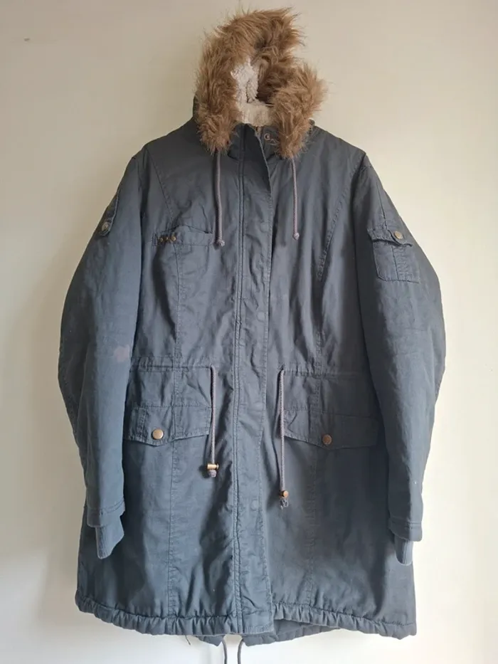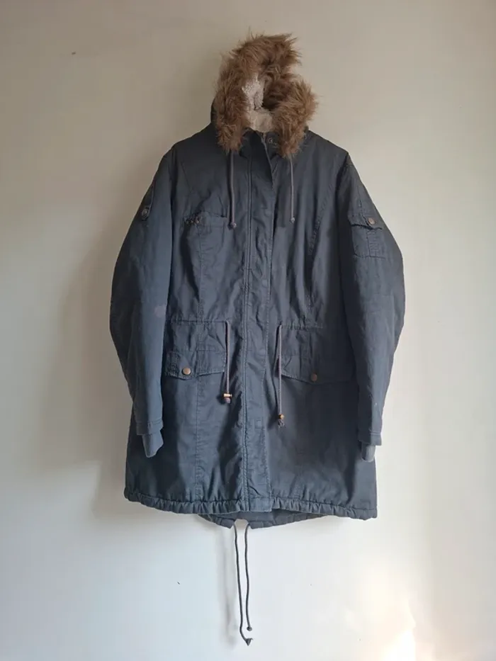 Parka longue kaki- chaude avec capuche fourrée, Parka, en très bon état, taille 46/48