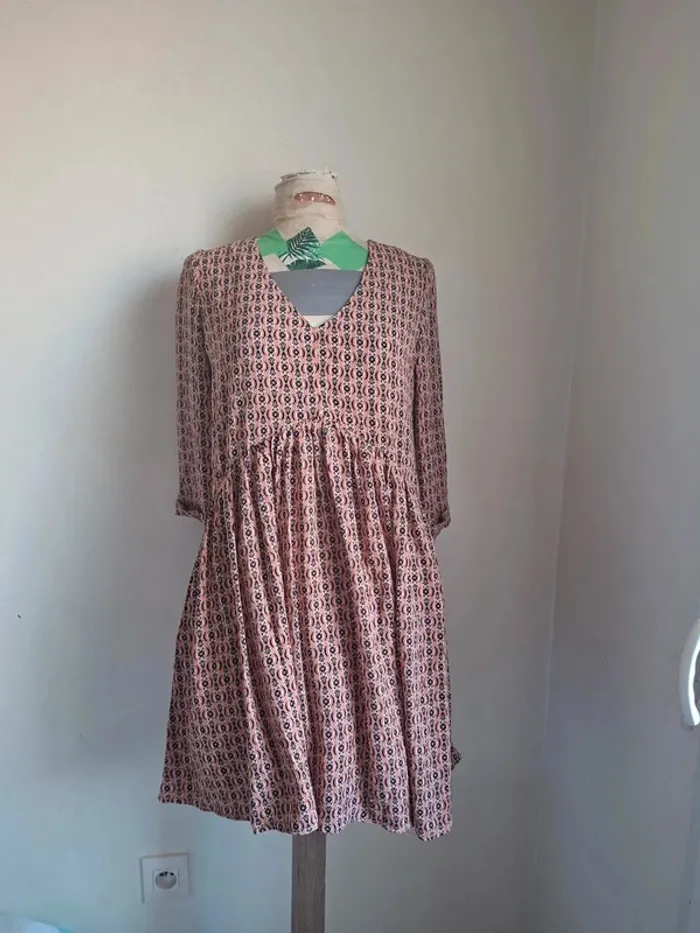 Robe imprimée noir et marron, style rétro et féminin, By one, neuve, taille S/M - photo numéro 6