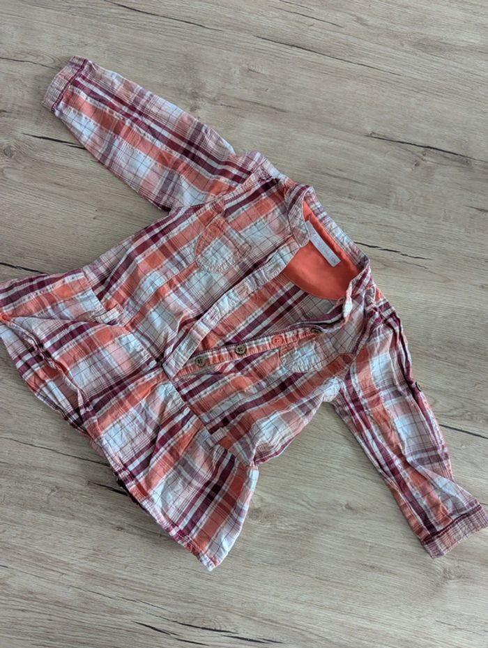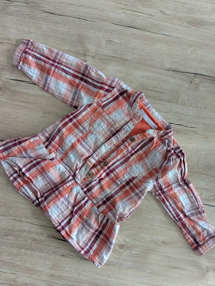 Chemises à manches longues, longues, fait plutôt tunique à mettre avec un legging. En très bon état. A carreaux avec liseré brillant. Priorisez les lots : jusqu'à -50% ✨ #fille12moisgameirot