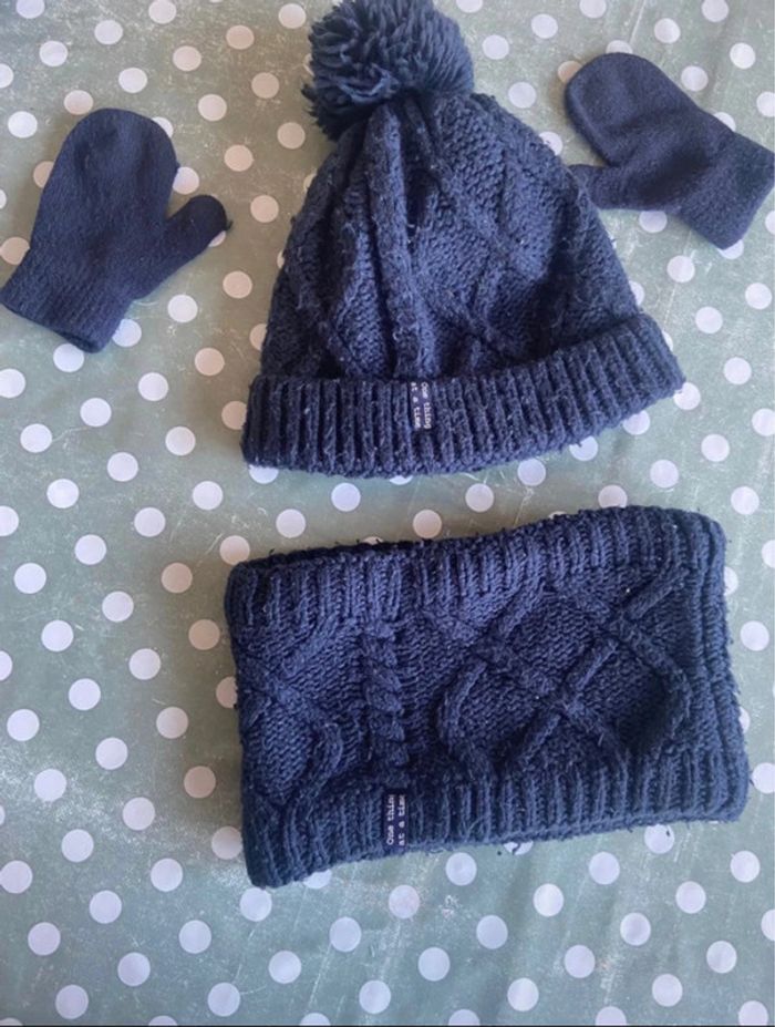 Lot bonnet à pompon tout de cou moufles 6 ans - photo numéro 1