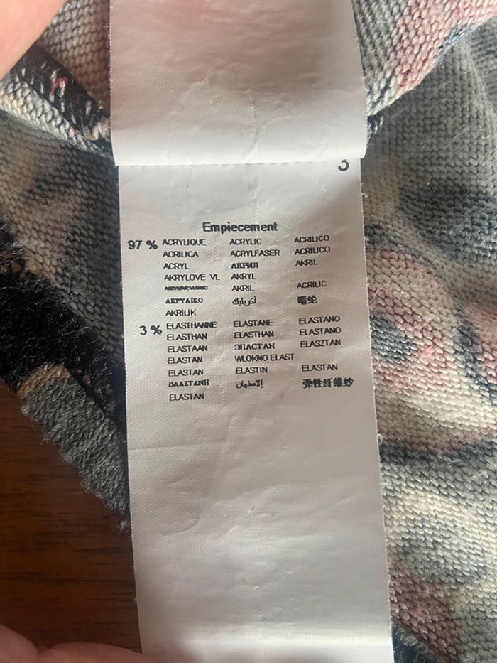Tunique femme Taille 2 équivalent T. 38 Élastique sous poitrine 97% acrylique 3% élasthane Prévoir de passer le rasoir anti bouloches Noir, bordeaux, gris bleu, crème