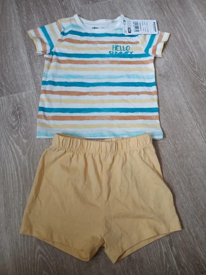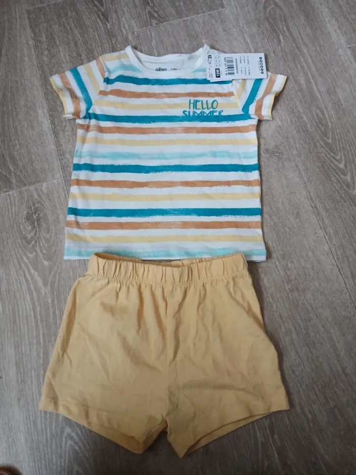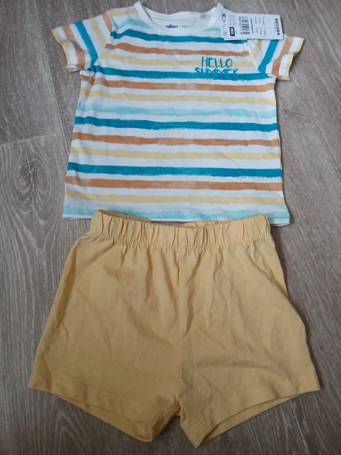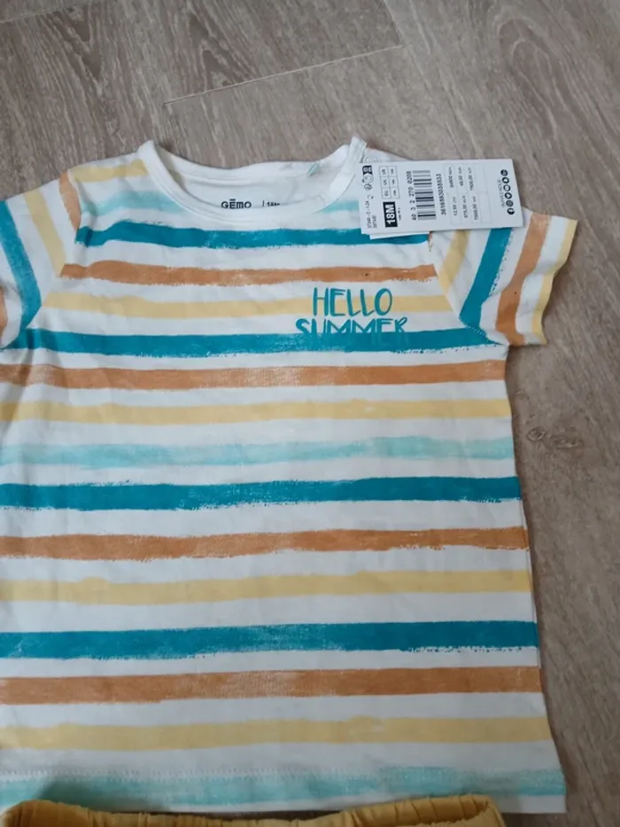 Ensemble bébé garçon. 18 mois. Comprenant tee shirt et short. De chez gemo. Neuf. Short taille élastique. #ensembleneuf18mois #ensembleneufbebegarcon #ensembleshortetteeshirtbebe