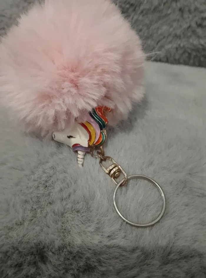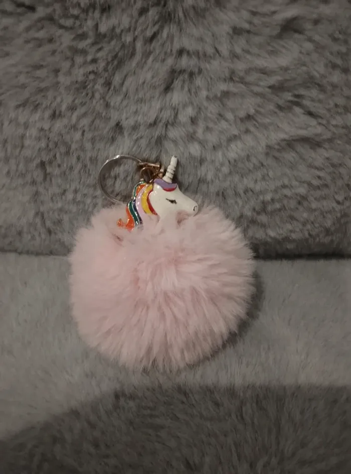 Porte clés boule pompon licorne - photo numéro 1