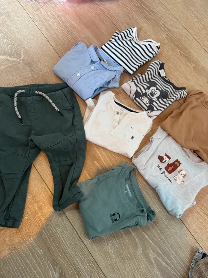 1 chemise 4 t shirts manches longues 2 bodys (clair taché) 1 pantalon