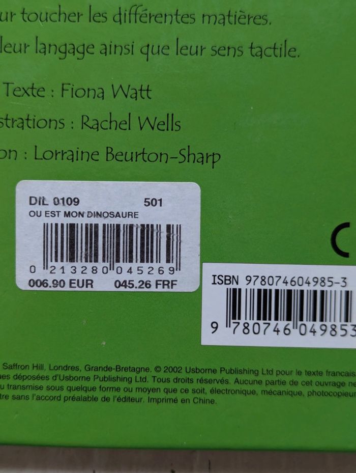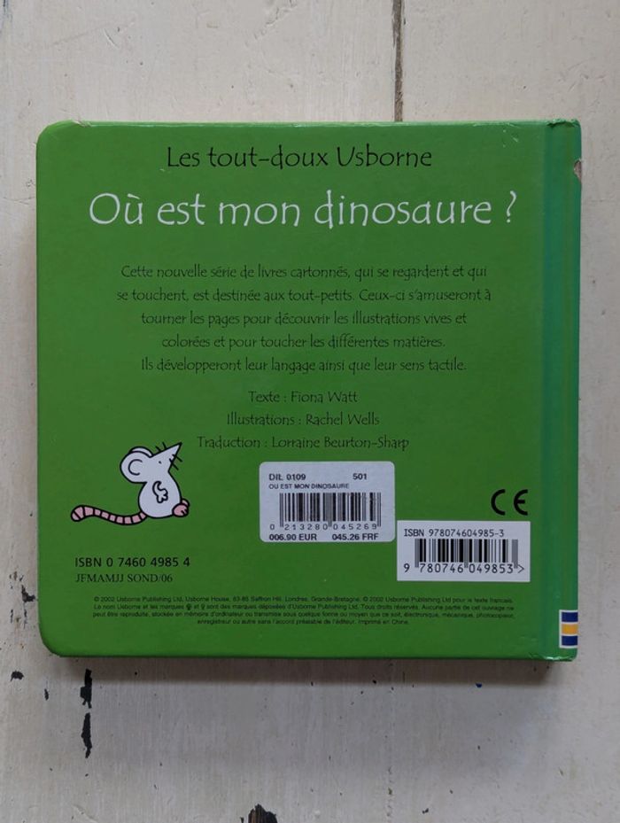 D'autres livres bébé / enfant à 1€ à vendre dans mon dressing #LivresDLau : n'hésitez pas à faire des lots pour amortir les frais de port et activer les réductions 😉 Livre à toucher Éditeur ‏ : ‎ Usborne (27 juin 2002) Langue ‏ : ‎ Français Broché ‏ : ‎ 10 pages ISBN-10 ‏ : ‎ 0746049854 ISBN-13 ‏ : ‎ 978-0746049853 Âge de lecture ‏ : ‎ 0 - 2 ans Poids de l'article ‏ : ‎ 300 g Dimensions ‏ : ‎ 16.7 x 2.1 x 16.8 cm