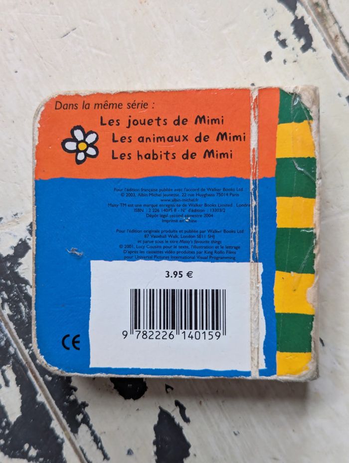 D'autres livres bébé / enfant à 1€ à vendre dans mon dressing #LivresDLau : n'hésitez pas à faire des lots pour amortir les frais de port et activer les réductions 😉 Comme tous les enfants, Mimi a des jeux préférés, des jouets préférés et aussi des activités préférées qui sont recensés dans ce petit cartonné à la taille des mains des tout-petits. A partir de 18 mois. Éditeur ‏ : ‎ Albin Michel Jeunesse (2 juin 2003) Langue ‏ : ‎ Français Cartonné ‏ : ‎ 18 pages ISBN-10 ‏ : ‎ 2226140158 ISBN-13 ‏ : ‎ 978-2226140159 Âge de lecture ‏ : ‎ 0 - 2 ans Poids de l'article ‏ : ‎ 118 g Dimensions ‏ : ‎ 8.5 x 2.5 x 8.5 cm
