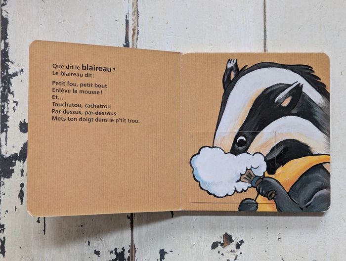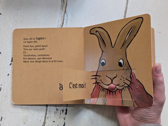 D'autres livres bébé / enfant à 1€ à vendre dans mon dressing #LivresDLau : n'hésitez pas à faire des lots pour amortir les frais de port et activer les réductions 😉 Touchatou, cachatrou... Un petit bestiaire à trous pour jouer de tout son soûl à mettre les p'tits doigts dans le nez, la bouche, les oreilles et les yeux des animaux de papier. Éditeur ‏ : ‎ EVERGREEN (11 mars 1996) Langue ‏ : ‎ Français Cartonné ‏ : ‎ 16 pages ISBN-10 ‏ : ‎ 2211036945 ISBN-13 ‏ : ‎ 978-2211036948 Âge de lecture ‏ : ‎ 0 - 2 ans Poids de l'article ‏ : ‎ 134 g Dimensions ‏ : ‎ 15.3 x 1 x 16.3 cm