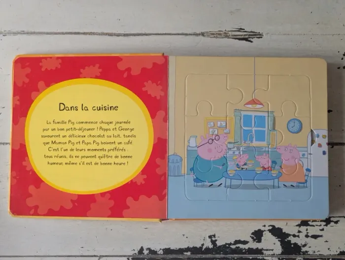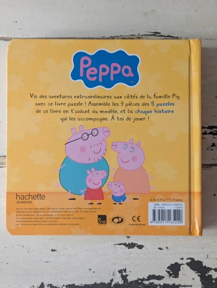 Livre ludique et éducatif pour les tout-petits, combinant un livre et un puzzle. 🎨 Illustrations colorées de Peppa Pig et ses amis. 🧩 Pièces faciles à manipuler, adaptées aux petites mains. 📚 Idéal pour développer la motricité fine et le sens de l’observation. ✅ Puzzle complet, en excellent état, très peu utilisé D'autres livres, puzzles, jeux et jouets à vendre dans mon dressing #LivresDLau #JeuxetJouetsDLau : n'hésitez pas à faire des lots pour amortir les frais de port et activer les réductions 😉