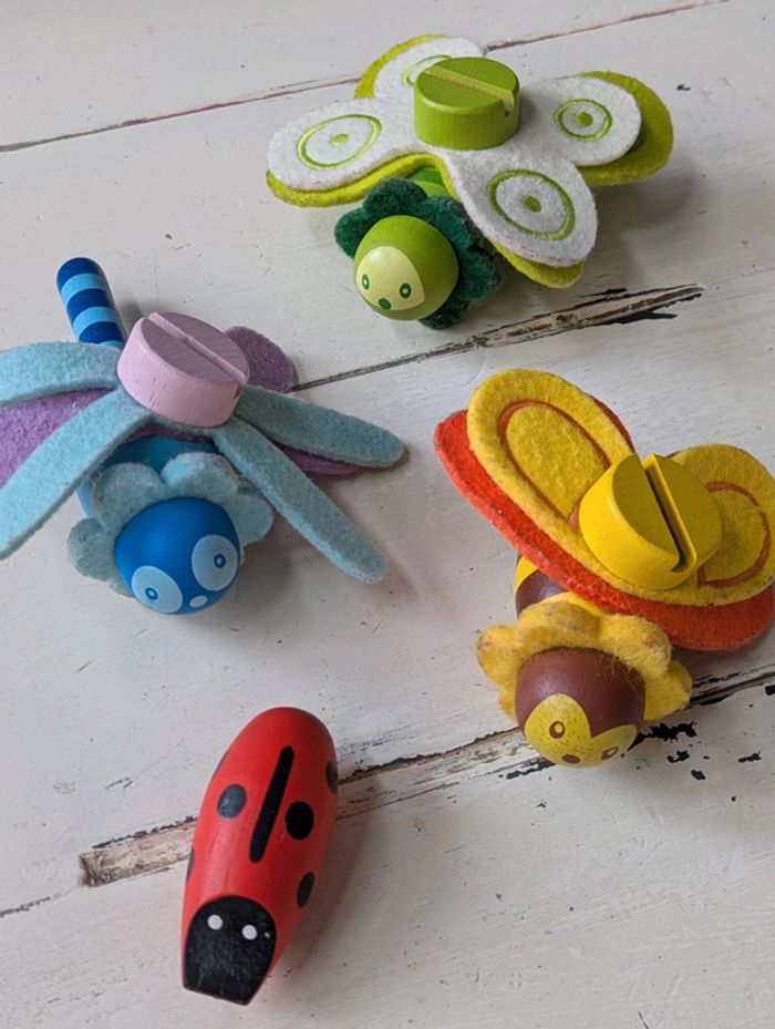 Jouet ludique et éducatif de 3 petites bêtes en bois à visser et dévisser. Parfait pour développer la dextérité, la motricité fine et l'imagination des tout-petits ! - Matériaux : Bois peint, feutrine. - Âge recommandé : À partir de 2 ans. - État : Bon état général, feutrine un peu usée mais jouet en parfait état de fonctionnement. D'autres jeux et jouets à vendre dans mon dressing #JeuxetJouetsDLau : n'hésitez pas à faire des lots pour amortir les frais de port et activer les réductions 😉