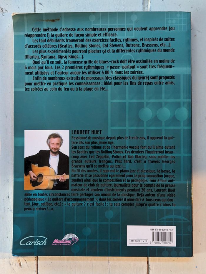 Méthode d’initiation pour guitare acoustique ou électrique, idéale pour débutants et autodidactes. Propose une approche simple avec des exercices accessibles, des rythmiques variées et des chansons connues (Beatles, Brassens, Bob Marley, etc.). Inclus : un CD extra avec fichiers audio, multimédia et MIDI. - Dimensions : 30.4 x 1.7 x 22.5 cm - Nombre de pages : 182 pages - ISBN-10 : 8882918718 - ISBN-13 : 978-8882918712 - Édition : Carisch - CD Cette méthode s'adresse aux nombreuses personnes qui veulent apprendre (ou réapprendre !) la guitare de façon simple et efficace. Les tout débutants trouveront des exercices faciles, rythmés, et inspirés de suites d'accords célèbres (Beatles, Rolling Stones, Cat Stevens, Dutronc, Brassens, etc). Les plus expérimentés pourront piocher çà et là différentes rythmiques du monde (Marley, Santana. Gipsy Kings...). Quoi qu'il en soit, la fameuse grille de blues-rock doit être assimilée en moins de 6 mois par tous. Les 2 premières rythmiques " passe-partout " sont très fréquemment utilisées et l'auteur avoue les utiliser à 80 % dans les soirées. Enfin de nombreux extraits de morceaux (des classiques du genre) sont proposé pour mettre en pratique les connaissances : idéal pour les fins de repas entre amis, les soirées au coin du feu ou à la plage en été... D'autres livres à vendre dans mon dressing : #LivresDLau faites des lots pour amortir les frais de port et activer les réductions 😉