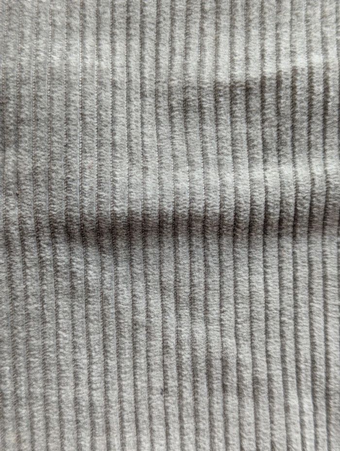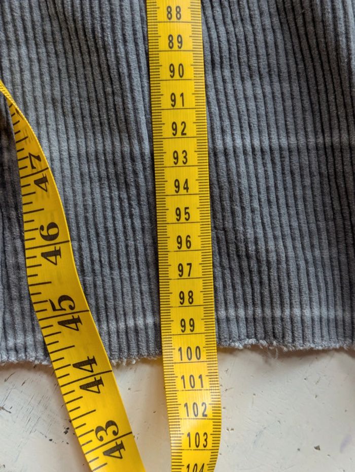 Pantalon en velours côtelé gris, coupe large et droite, style rétro : - Taille : environ 42/44 Largeur taille : 41 cm Longueur totale : 100 cm Hauteur du bassin (fourche) : 28 cm Largeur bas du pantalon : 26 cm - 100% coton - Fermeture à bouton métallique gravé - Poche arrière avec couture décorative - Tissu souple et agréable à porter D'autres vêtements pour femme #FemmeDLau à vendre dans mon dressing : n'hésitez pas à faire des lots pour amortir les frais de port et activer les réductions 😉