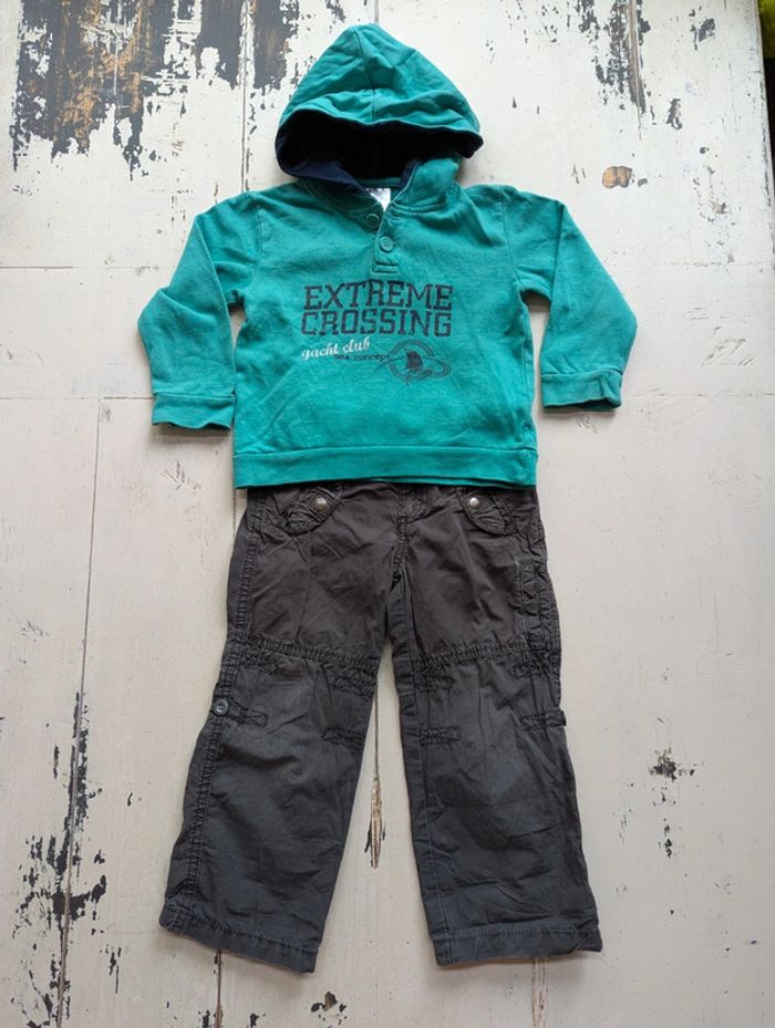 Tenue mi-saison en taille 3 ans : - un pantalon fin de marque 3 suisses, transformable en pantacourt, coloris gris - un sweat vert Papagino - un tee-shirt blanc La Redoute Très bon état D'autres vêtements bébé à vendre dans mon dressing #36moisDLau : n'hésitez pas à faire des lots pour amortir les frais de port et activer les réductions 😉