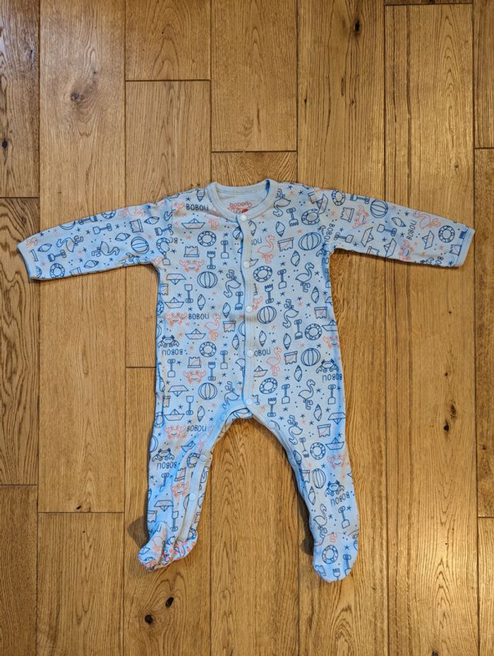Lot de 4 pyjamas légers en coton, taille 6 mois #6moisDLau : - un pyjama blanc à petits motifs de marque Kiabi, avec pressions à l'avant, en bon état - un pyjama bleu clair à motifs de marque Boboli, avec pressions à l'avant, en bon état - un pyjama kaki à motifs noirs, sans pieds, sans marque, en très bon état - un pyjama blanc en coton épais, sans pieds, sans marque, fermeture zippée, en très bon état D'autres vêtements bébé #6moisDLau à vendre sur mon profil !