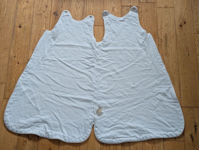 Gigoteuse chaude, idéale pour la mi-saison ou l'hiver (épaisseur assez chaude, TOG non précisé). - Marque : Kitchoun - Âge : 6-24 mois (évolutive) - État : Très bon état - Fermeture facile avec zip latéral et boutons-pression aux épaules. - Boutons-pression au dos permettant de replier et raccourcir la gigoteuse. D'autres articles pour bébé #GigoteuseDLau à vendre sur mon profil : n'hésitez pas à faire des lots pour amortir les frais de port !
