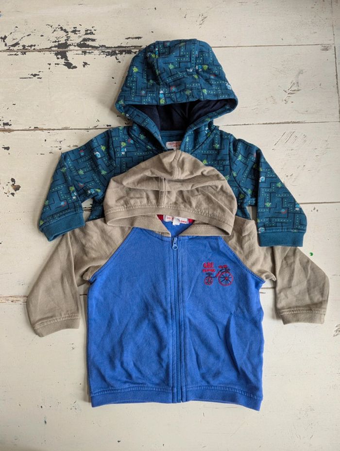 Lot de 2 sweats zippés à capuche de marque DPAM, en taille 9 mois #9moisDLau : - 1 gilet fin, bleu et taupe, avec petit décor bridé - 1 gilet molletonné bleu-vert avec imprimé "pacman" Excellent état D'autres vêtements bébé #9moisDLau à vendre dans mon dressing : n'hésitez pas à faire des lots pour amortir les frais de port et activer les réductions 😉