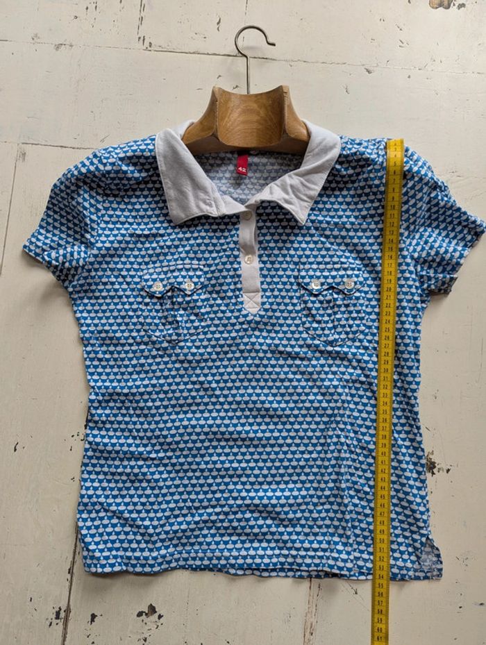 Polo H&M femme imprimé bleu et blanc - Taille 42 - photo numéro 7