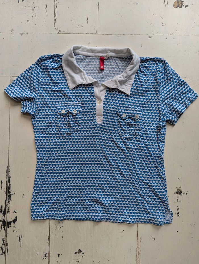 Polo H&M femme imprimé bleu et blanc - Taille 42 - photo numéro 1