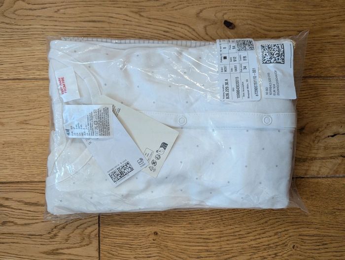 Lot de 2 pyjamas en coton, de marque H&M, sans pieds et fermeture par boutons pression, coloris blanc à motifs gris : pois et rayures. Taille 104 cm, 3-4 ans Neufs, sous blister D'autres vêtements bébé à vendre dans mon dressing : n'hésitez pas à faire des lots pour amortir les frais de port et activer les réductions
