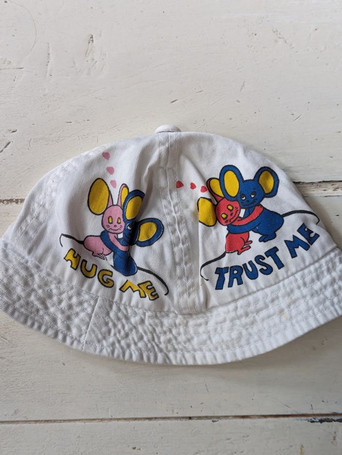 Joli bob vintage avec imprimé souris Tour de tête : 49 cm - de 1 à 2 ans environ Très bon état D'autres vêtements bébé à vendre dans dressing #12moisDLau #18moisDLau #24moisDLau / #CouvreChefDLau : n'hésitez pas à faire des lots pour amortir les frais de port et activer les réductions 😉
