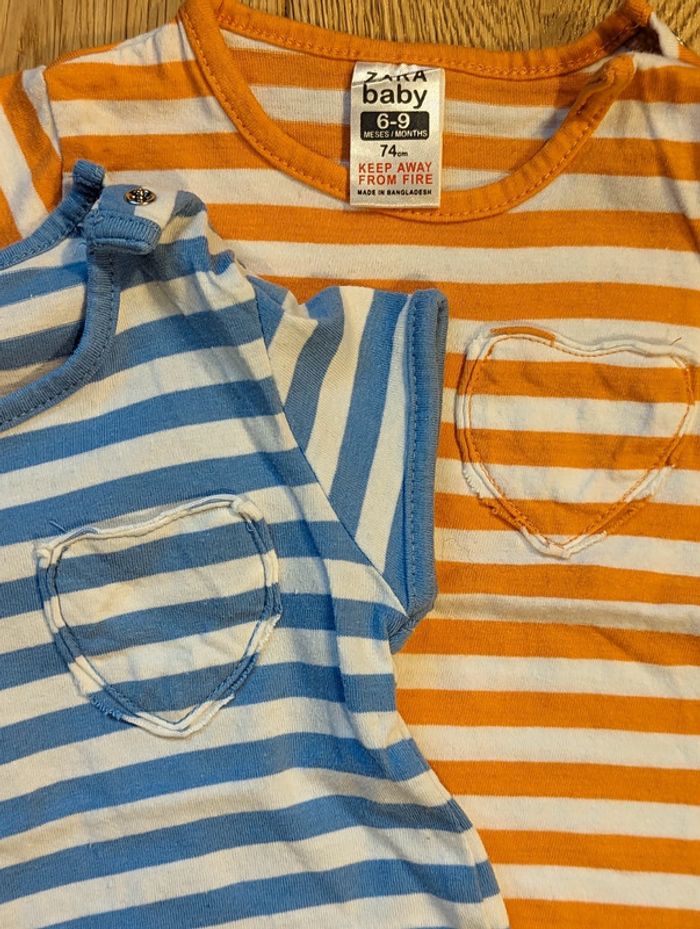 Lot de 2 tee-shirts de marque Zara #6moisDLau , esprit marinière, avec boutons à l'épaule et joli détail en coeur sur la poitrine Taille 6-9 mois Excellent état D'autres vêtements bébé #6moisDLau à vendre sur mon profil : n'hésitez pas à faire des lots pour amortir les frais de port et activer les réductions 😉